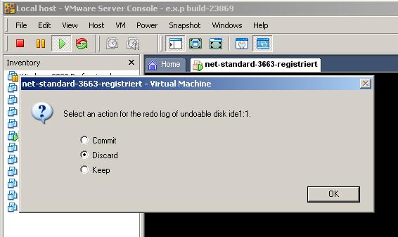 A VM in grandpa-mode can use snapshots like in the good old days when REDO-logs also used the name REDO-log. After you powerdown a VM it will ask you "Revert, Append or Discard?" in case you used also ide0:0.mode = "undoable" for your disks. If you are useing VMware as a tool to survive the internet you can use a layout like this for new guests: first disk: non-persistent mode second disk: undoable mode Use the first disk to have a "clean on reset" basic installation, configure disk two for your users home directory and handle it as "discard when it looks suspicious" and use the third disk for your downloads and documents. You think this is a cool way to improve things like the browser appliance?