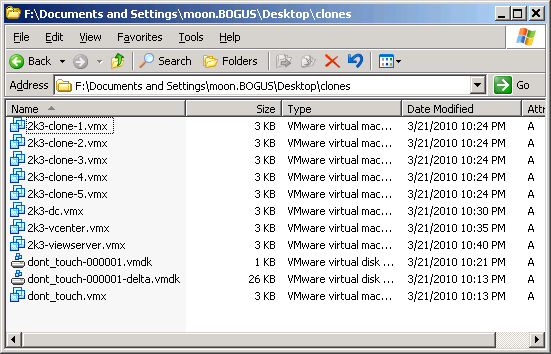 Screenshot below shows several new copies of the vmx-file - each one